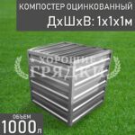 Компостер оцинкованный (1000 литров) с крышкой — предназначен для заготовления натуральных удобрений. Данная модель проста в установке и не требует особого ухода. Дверца на корпусе придает удобство в использовании.